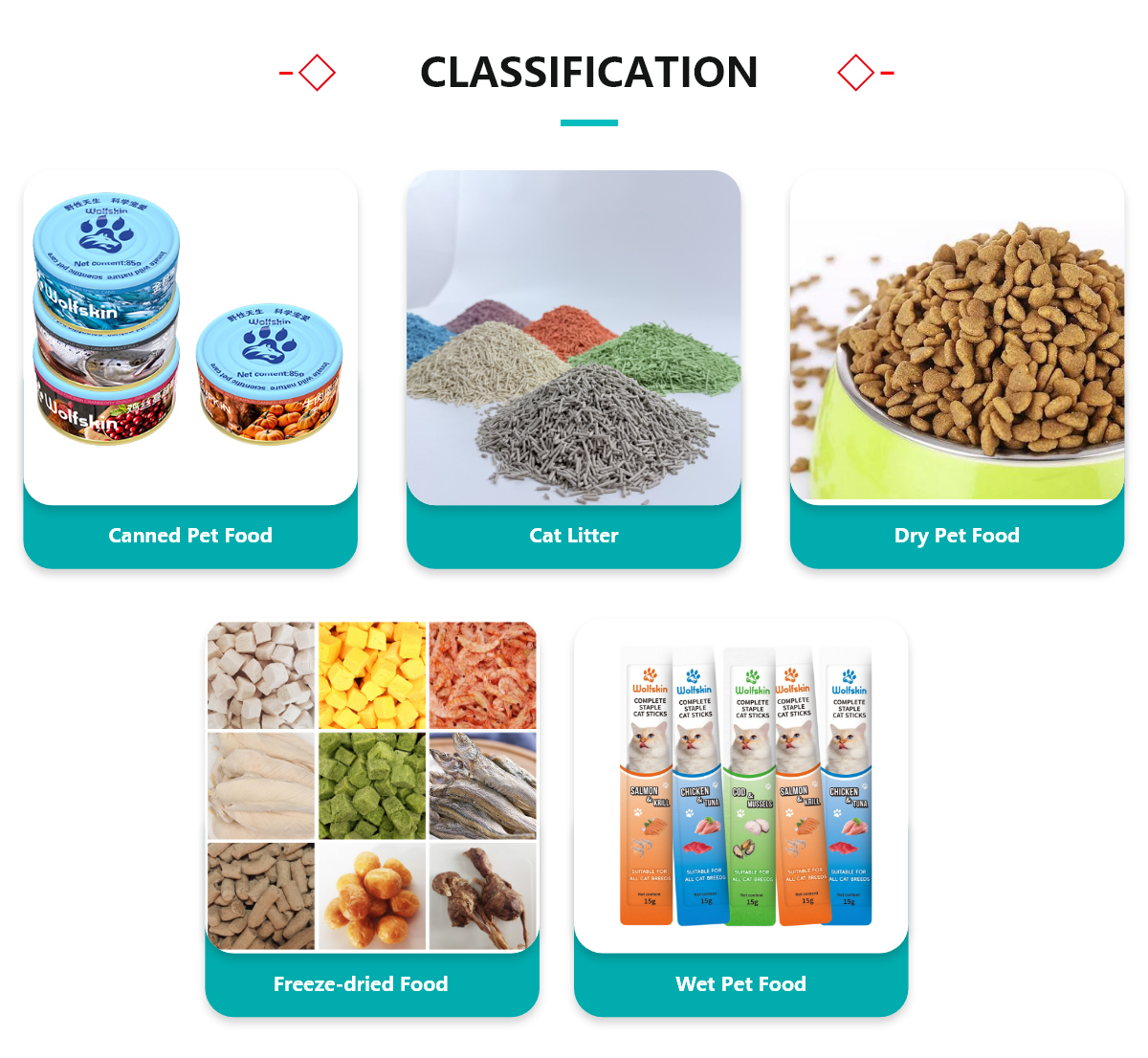 Productos principales:Alimentos liofilizados, alimentos básicos secos, alimentos básicos húmedos, alimentos enlatados para mascotas, arena para gatos